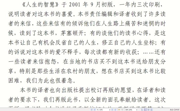 他于1850年写了《附录和补遗》一书,《人生的智慧》是该书中的一部分。在书中,他以优雅的文体,格言式的笔触阐述了自己对人生的看法。《人生的智慧》使沉寂多年的叔本华在晚年一举成名。我社出版的这本全译本是我国第一个根据德文版译出的中文本。这本书讨论的事情与我们的世俗生活至为接近,诸如健康、财富、名声、荣誉、养生和待人接物所应遵守的原则等。正如叔本华所说的,在这本书里他尽量以世俗、实用的角度考虑问题。因此,这本书尤其适合大众阅读。虽然叔氏尽量放弃了居高俯临的审视角度,但关于错综复杂并因此众说纷纭的世俗人情的话题,经过这位思想大师一贯深刻而因此透彻的讨论之后,变得清晰简明,话题也几已穷尽矣。