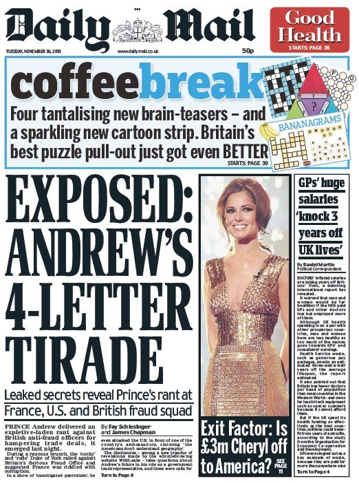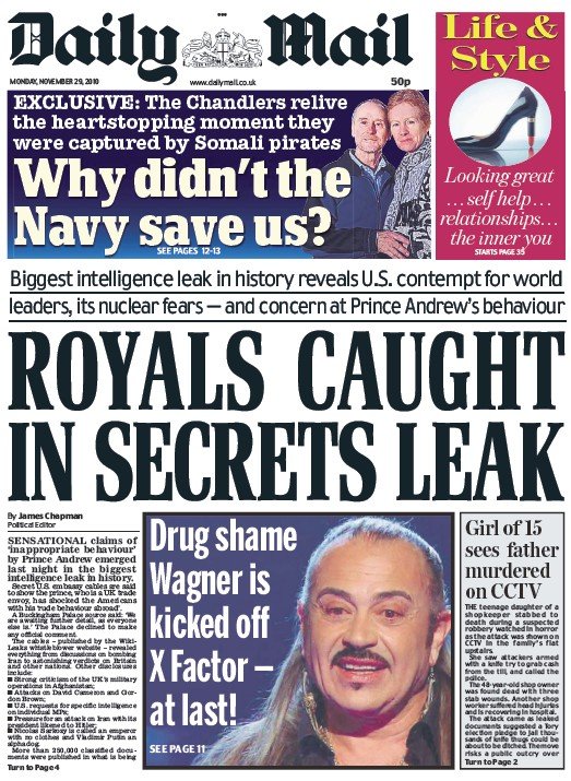 [每日邮报]Daily.Mail.2010.11.24 《每日邮报》,DailyMail由英国现代新闻创始人北岩勋爵在1896年创办,被认为是英国现代资产阶级报业的开端。同时创建的北岩报团亦是英国最早的报团。