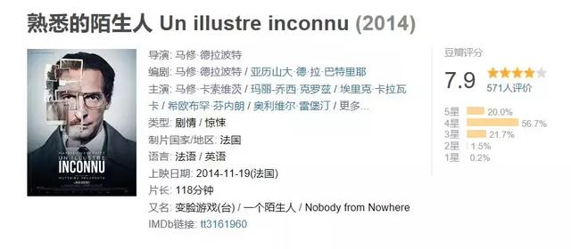 《熟悉的陌生人》是一部来自法国的电影,豆瓣上仅有500多人标注看过,评分为7.9分,可以算是一部冷门佳片,只是被严重忽略。