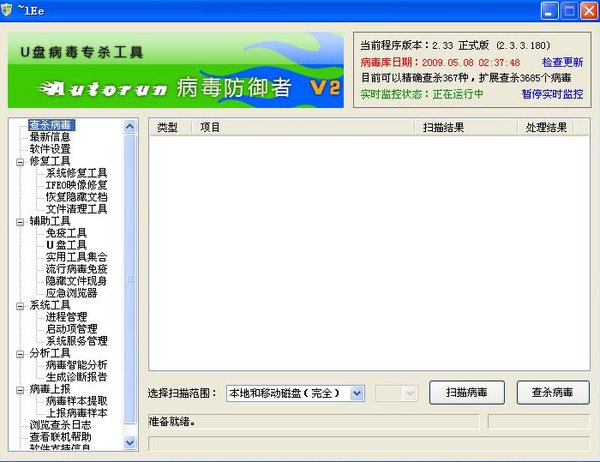 Autorun病毒防御者软件是一款专门针对流行的U盘病毒开发的查杀程序。它独有的精确查杀与扩展查杀双查杀机制能够彻底清除病毒和木马的相关文件和注册表项,不留残余。配合独特的启发式查杀引擎,对未知U盘病毒拥有90%以上的识别率。此外,软件还有U盘病毒免疫、系统修复、残余清理、病毒分析、系统诊断、顽固目录删除、应急浏览器、隐藏文档恢复、隐藏目录恢复、U盘解锁、U盘软件写保护等一系列完整的辅助工具,以及进程管理、启动项管理和系统服务管理等系统工具,能够让您彻底远离U盘病毒的困扰。
