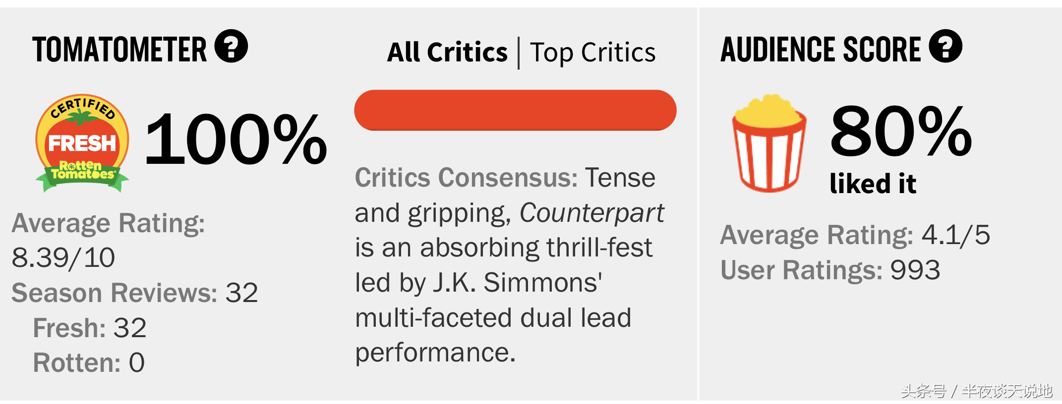 国外网站上,新鲜度是100%,观众评价是80%喜欢。