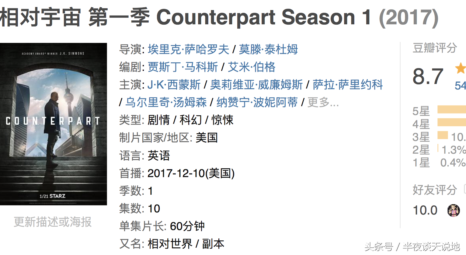 国外有媒体评论说,这部剧的厉害之处是套了个科幻的壳,实际上却是一部不折不扣的间谍、惊悚、动作剧,让人欲罢不能。