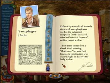 游戏名称:古墓之谜 英文名称:Ancient Mysteries King Tut's Tomb 游戏类型:冒险解谜 游戏制作:Game Mill 游戏发行:Avanquest 语言版本:英文 发行日期:2010年10月23日 【游戏简介】   在过去的50年里关于埃及法老图坦卡蒙之死一直没有定论,有人说他死于疾病,也有人说他是被谋杀的。   以著名考古学家John ​Carter的身份进入古墓进行调查,找出幕后真相,你面对的是远古兄弟会为他们敬爱的法老王的陵墓布下的重重机关。 Ancient Mysteries - King Tut’s Tomb £9.99 Explore the Pyramids! * 10 acts with 50+ levels * Hundreds of items in each location * Credit-based hint system * Discover hidden objects and clues to decipher ancient codes and solve the ultimate King Tut mystery Over the past 50 years there has been a great deal of controversy surrounding the death of the young Pharaoh Tutankhamen. Some speculate that he died from illness, while others insist that it was murder. Play as famed archeologist John Carter, trying to discover a possible solution to the mystery of King Tut’s short reign. Along the way you will encounter tricks and traps set by an ancient brotherhood that has long vowed to protect the memory of the once great pharaoh. * Experience the Valley of the Kings - ancient hieroglyph-encrusted walls & hidden chambers serve as the backgrounds that contain the clues needed to solve the mystery * 10 acts with 50+ levels * Hundreds of items in each location * Credit-based hint system * Discover hidden objects and clues to decipher ancient codes and solve the ultimate King Tut mystery System Requirements Platform Windows XP, Windows Vista 32-bit, Windows 7 * Windows® XP, Vista and Windows® 7 compatible * Pentium IV 1.2 Ghz processor or faster * 256 MB RAM * 800 x 600 minimum screen resolution * Sound Card Recommended * Direct X 9.0c * 150 MB Hard Drive Space 【游戏截图】