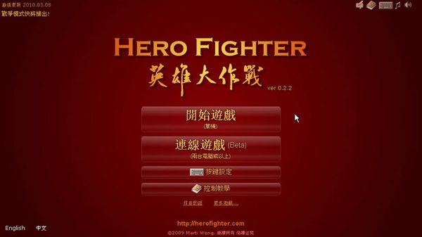 Hero Fighter由香港游戏开发者Martiwong于2009年期间制作的一款格斗游戏,在2009年7月底正式   发布测试版。由于此游戏是用于web-based和flash技术制作的,可以使用浏览器玩。现时最新版本为0.2.2,可以使用步兵、弓兵、骑兵和五位人物角色展开百人大战。   Hero Fighter并具有多人连线系统,最多容纳四台电脑、十二位玩家连线对战。 ==================================================== 配置:p3 1Ghz 100mb hard drive space 8mb video card sound card mouse/keybord