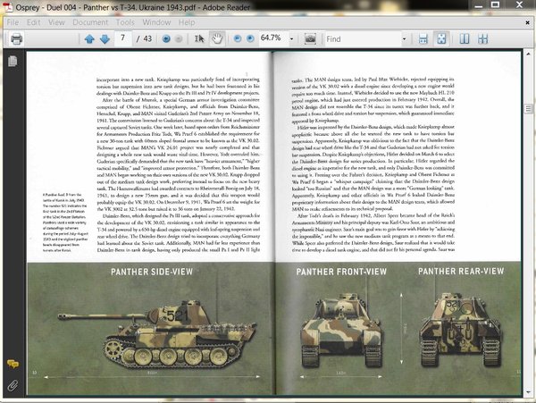 奔驰公司先后研制出VK3001和VK3002原型车,但由于和T-34/76过于相象,以会导致战场识别困难的理由都被否决。MAN公司也推出了VK3002原型车,和奔驰公司的VK3002一同在希特勒生日1942年4月20日那天向希特勒进行了展示,而后MAN公司的设计最终获得批准。VK3002原型车的炮塔象T-34坦克一样置于车体前部,但后来生产的炮塔都置于车体中部,因此“黑豹”式可以拥有更长的火炮身管,具备了火力性能上的先天优势。1942年12月,“黑豹”正式生产型投产,被定为PzKpfw V Ausf D型,次年1月首批“黑豹”D型出厂。此时的豹式以远远超出原先设计要求的30吨级,前装甲也由最初要求的60mm增加为80mm,坦克全重达到了44吨。“黑豹”与先前的德国坦克截然不同,最先采用了倾斜装甲。豹式坦克采用了660mm宽履带,强力的发动机(从D2开始更换装了高达700马力的HL 230P30发动机,此发动机成为豹式的标准动力装置),机动越野性能非常优秀。