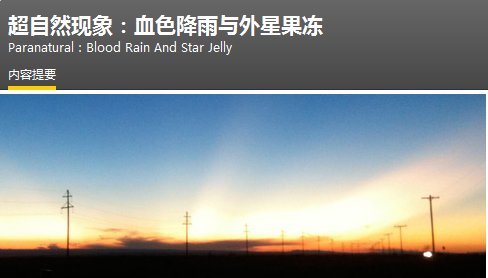 【类型】: 纪录 【影片长度】: 40分钟 【集数】:全一集 【字幕】: 暂无 【服务器】: 随机 【分享时间】:全天 【内容介绍】: 超自然现象:血色降雨与外星果冻 每年都有数千吨的物质从外层空间纷纷降落地球表面,每天有100吨的彗星进入大气层。大多时候我们对此一无所知,然而,有时我们却不能忽略这种现象。世界各地都有报道称有人在这些陨石坠落处发现了奇怪的东西。有时是黏黏的胶状物,有时则像是下血雨。现在科学家正在寻找线索,他们的发现或许将改变我们对宇宙生物的理解。 (转自国家地理官站)