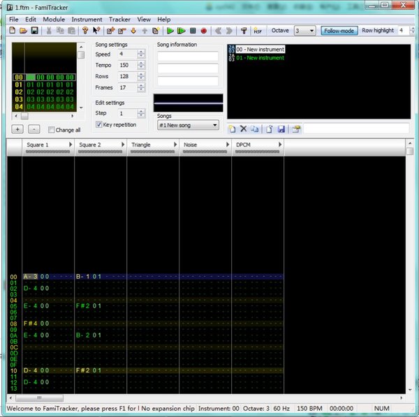 FamiTracker一共5轨,其中4轨用来编辑8BIT基础波形,第5轨支持采样音色