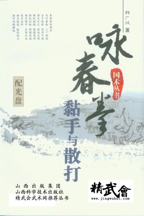 咏春拳是中国拳术的南拳之一,早年流行于广东、福建各地。此拳初传于福建永春县,为该县严三娘所创,以地名为拳名,故名“咏春拳”。亦传此拳由五枚师太所创,后传授与弟子严咏春,故名“咏春拳”。此拳主要手型为凤眼拳、柳叶掌,拳术套路主要有小念头、寻桥和标指3套拳及木人桩。基本手法以三傍手为主,还有挫手、撩手、破排手、沉桥、粘打。主要步型有四平马、二字马、追马、跪马、独立步等。它是一种集内家拳法和近打于一身的拳术。它立足于实战,具有招式多变、运用灵活、出拳弹性,短桥窄马,擅发寸劲为主要特点,以大闪侧,小俯仰,耕拦摊膀,摸荡捋,审势记牢,曲手留中的手法,以搭、截、沉、标、膀、腕指、黏、摸、熨荡、偷、漏和“二字钳羊马”的身形步法为标志。凭借手桥肌肤灵敏的感觉,发挥寸劲力量的内家拳法。