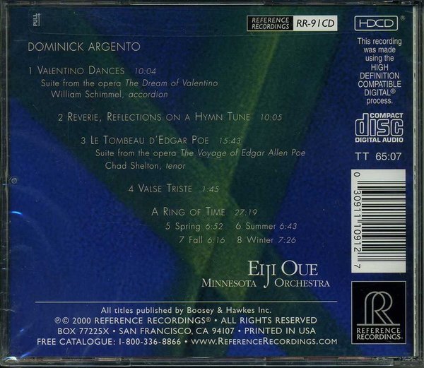 这个专辑是RR推出的一张非常优秀的管弦乐录音,由RR力捧的发烧音乐组合:大植英次指挥明尼苏达管弦乐团演奏美国当代作曲家多米尼克·阿尔吉托的歌剧和管弦乐作品。