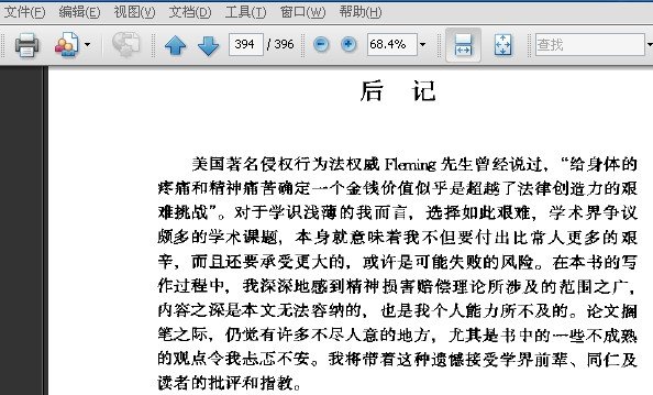 第一章为精神损害赠偿制度概论。本章通过对反对和赞同精神损害赠偿的两种学说的讨论、阐释了精神损害赔偿的理论依据在于精神损害赔偿具有补偿、抚慰受害人,惩罚加害人的功能。第二章为精神损害。本章对“损害”与“损失”的概念的异同进行了辩的,讨论了关于损害概念的三种学说。第三章为精神损害赔偿的归责。此章讨论了过错责任原则的历史沿革及精神损害赔偿制度萌芽、形成及确立的进程,阐述了过错责任原则为精神损害赔偿基本归责原则的理论依据以及精神损害赔偿场合适用“过错推定规则”的局限性。第四章为精神损害赔偿的范围。本章讨论了确定精神损守赔偿范围的基本理论,对确定精神损害赔偿范围的若干学说明进行了探讨。第五章为精神损害赔偿的特殊问题。该章着重讨论了法人、对痛苦无感受能力之人、死者及胎儿的精神损害赠偿问题。第六章为精神损害抚慰金的算定。本章探讨了抚慰金算定上的特点,抚慰金算定的方法以及抚慰金算定的时间、地点标准。第七章为精神损害抚慰金的减额。本章探讨了过失相抵的意义、理论依据、历史沿革;过失相抵的适用范围及必须满足的要件;讨论了过失相抵的效果以及过失相抵与减损义务规则的关系等问题。