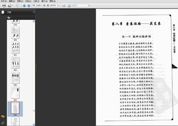 : 第一章 查拳之源流 第二章 查拳的基本功和基本动作 第三章 查拳贰拾捌路腿法练习 第四章 查拳一路——母子功架拳 第五章 查拳贰路——《行手拳》 第六章 查拳叁路——《飞脚拳》 第七章 查拳肆路——升平、短打 第八章 查拳伍路——关东拳