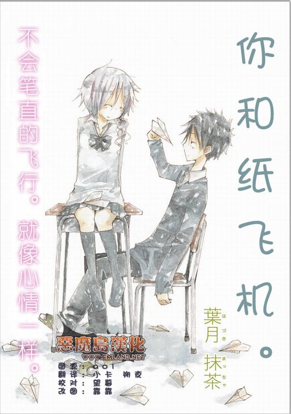 ■漫画名:你和纸飞机 ■著者:叶月抹茶 ■出版社名:《YOUNG GANGAN》 ■发行日期:2009 ■发行状态:01-12话 ■文字:简体中文 ■版本:恶魔岛汉化组