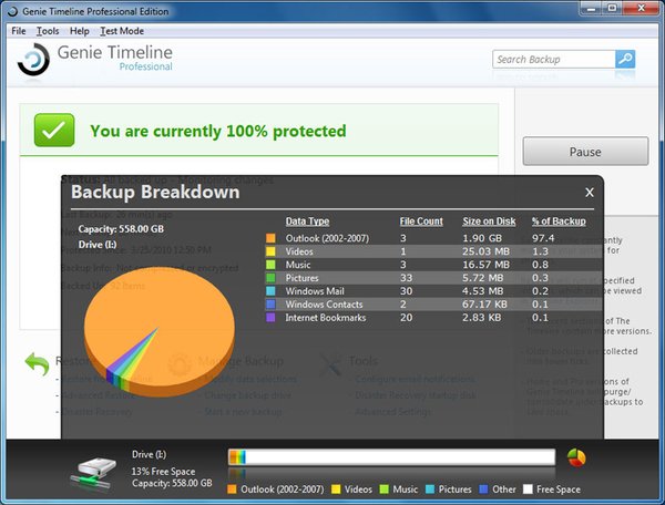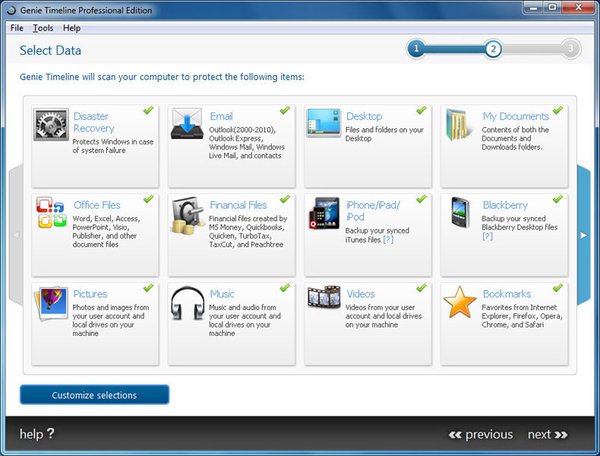 The setup process is almost completely automatic. When first setting up Genie Timeline, it predefines what data should be included in the backup and recommends what drives are best used as a backup destination.