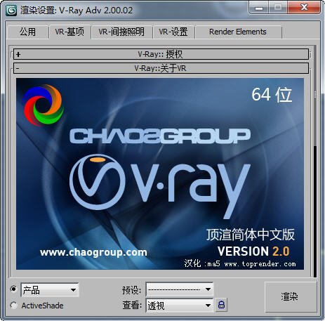 : V-Ray 2.00.02 for 3dsmax/design 9.0/2008/2009/2010/2011 32位/64位 顶渲简体中文版