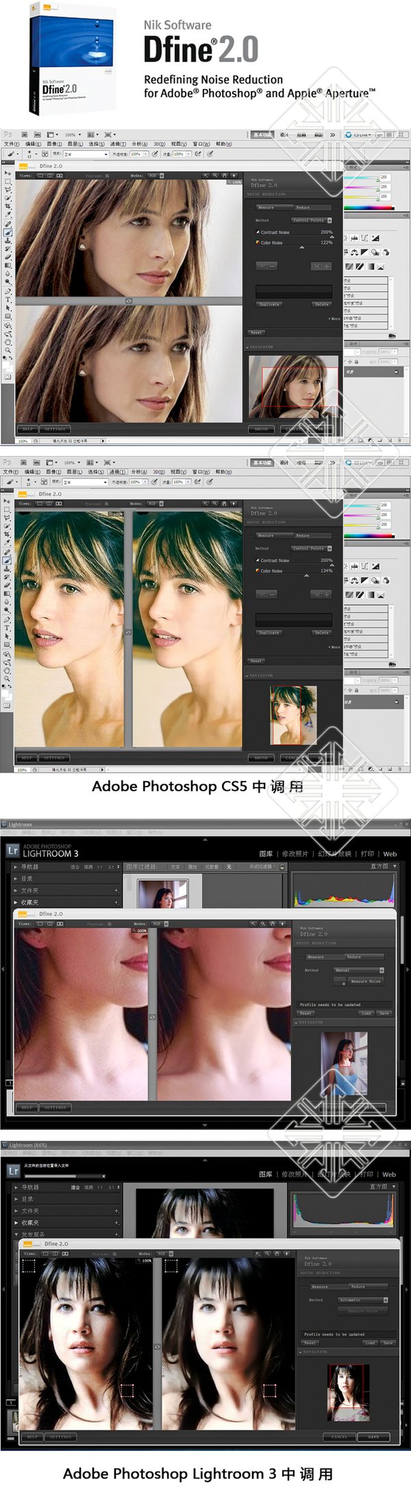 凭借先进的U点技术提供给你强大,灵活和便于控制的降噪服务。我们在通过数码摄影获取图片时,几乎所有的数码相机都会产生细微的噪点,使你的图片细节出现缺陷。NikSoftware推出的Dfine软件,它兼容Photoshop、Elements、Paintshop Pro、Ulead、和PhotoImpact等等图像处理软件。可轻松地降低噪点,平衡色彩和光线。以最佳质量显示图像的细节。