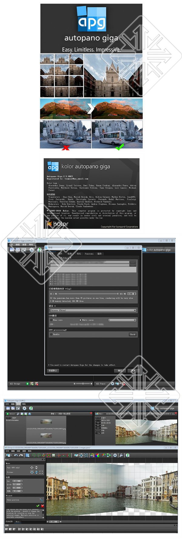 Kolor Autopano Giga是一款超强的全景图缝合制作工具,它可以使你在很短时间内将多张图片缝合成为一张360度视角的全景图,还可以将你的全景图片导出为flash以便你在互联网上和朋友分享。 Autopano Giga 软件致力于创造全景,虚拟旅游和gigapixel图像。基于Autopano Pro软件和包括其所有功能工具, Autopano Giga 远远超出了其它全景软件:无缝拼接您的360 °全景图片 ,也可以制作成Flash虚拟图片,联系在一起的旅游...所有照片如此多的可能性存在于一种新的方式和地方要共享。Autopano Giga 也能让您无缝制作创记录的几千图像到你创建的照片中。