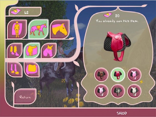 类型: SIM 游戏语言: 英文 游戏开发: Namco Games/Dancing Dots 【游戏简介】 这是一款饲养,训练和比赛的赛马模拟游戏,你将照顾和训练你的马匹,让它信赖你并且成为你的朋友,并且和它一起完成众多的挑战,在这个过程中你将成为一个优秀的骑士并且开始崭新的冒险。 游戏采用3D画面,温馨可爱的粉色作为游戏的菜单主色调,你可以自由设定爱马的外貌和装置,进入游戏后接近第一人称视角会让操控感更加真实,马匹外观和行动的动画制作也很逼真。游戏设定了可爱的背景音乐和逼真的动作效果音,为游戏中的各种行动带了更加真实的听觉感受。 游戏采用鼠标操控,界面菜单简单直观,上手非常容易,你要控制赛马完成各种动作和任务,在游戏进行之中会逐步掌握玩法。游戏的马匹订制风格多样,7个品种的赛马甚至包括斑马和独角兽可供选择,你可以自由调换爱马的外观和配饰。游戏的内容也十分丰富,巨大的3D世界场景可以让你和赛马自由驰骋。游戏包括3种可玩性很强的游戏模式,自由骑乘、表演跳跃和越野赛跑。将会全方面的展现驾驭马匹的各种玩法。而如何照顾你的马儿则体现了一定的模拟元素,游戏的整体可玩性很不错。 【配置需求】 CPU:1 GHz / 内存:256 MB / DirectX:9.0 【游戏截图】