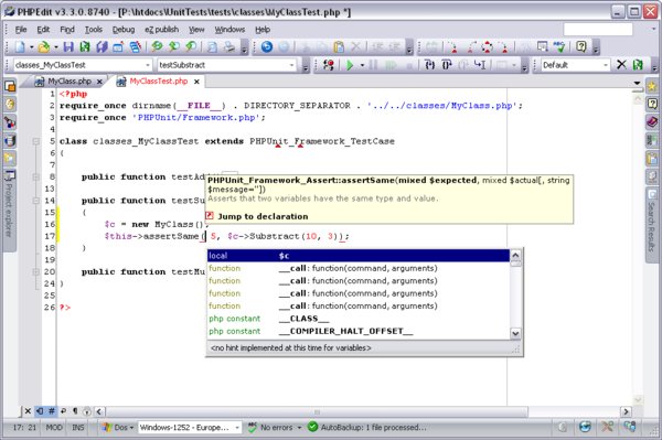 PHPEdit is a complete integrated development environement for PHP. Much more than a simple editor, it helps you carry out your projects in a friendly and efficient way, with a single tool integrating all the features you will need from the design of your projects, their documentation, to their deployement.