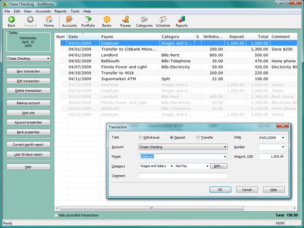AceMoney helps to organize and manage personal finances quickly and easily. It supports all the features required for home or even small-business accounting needs.