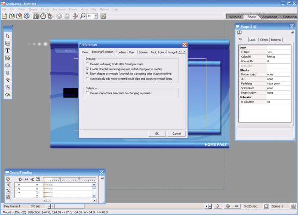 KoolMoves Flash Editor是一个网站动画制作软件,能够制作 Flash movies 以及与动画相关的内容。Flash movies 是一种压缩率相当高的网络动画文件格式。该软件还能够制作动画 GIF、制作文字特效、导入矢量剪贴画、附加 WAV 音频文件;为文字按钮和帧增加动作以及其他许多与网站动画效果相关的内容。