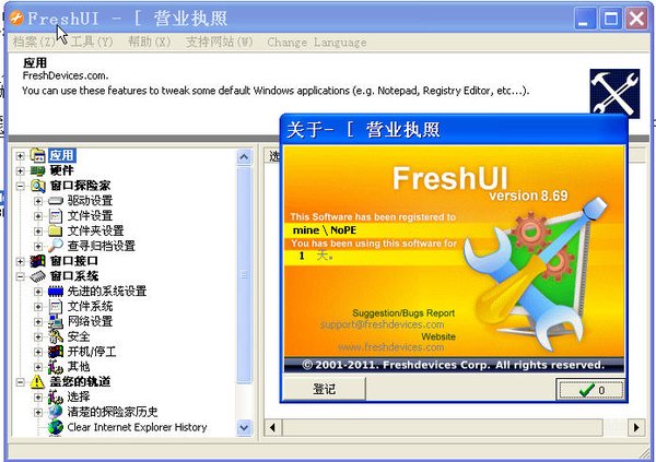 Fresh UI是一款优秀的系统配置、优化软件,为您提供数百种WindowsXP/2000/98/95/Me的隐藏设置选项。