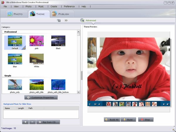 UltraSlideshow is the photo album software that can be used to build up photo sharing web album, art album, product gallery, news photo album, and many other types of photo albums. UltraSlideshow helps you create gorgeous photo album slideshows with music and transition effects, and lots of beautifully-designed flash templates.