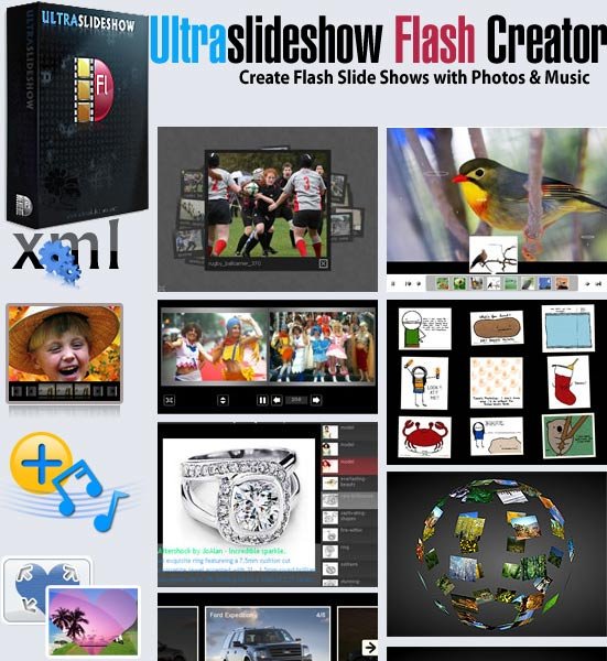 All UltraSlideshow-created slideshows are XML-driven, which means you get more dynamic control over the style and outlook of the flash slideshows.