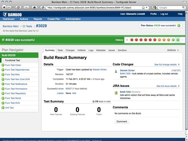To take advantage of the build structure changes in Bamboo 2.7, Plans, Stages, and Jobs, we have overhauled several key sections of Bamboo to find important build information faster.