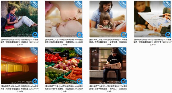 露珠英语工作室2011年开年新作:VOA慢速英语的iPod双语同步字幕互动学习读物(高清版)正式出炉啦!不用安装任何应用即可用自带的iPod有声读物播放,同步显示双语高清字幕,配套逐句对照中文参考译文,让你边听、边看、边学习,露珠继续和大家一起引领实用、时尚、创新的移动英语学习新体验!