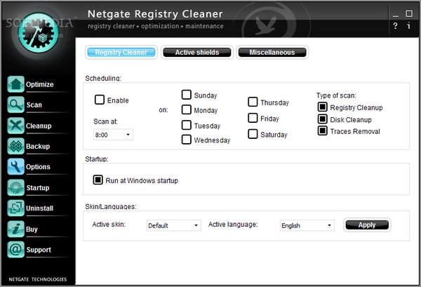 NETGATE Registry Cleaner cleans and defragment your registry, speed-up your PC, removes unneeded files on disks, removes activity traces. It includes Startup manager to manage programs started at Windows startup and Uninstall manager for handy applications uninstall. Supports scheduling of scans and backup option for better security.