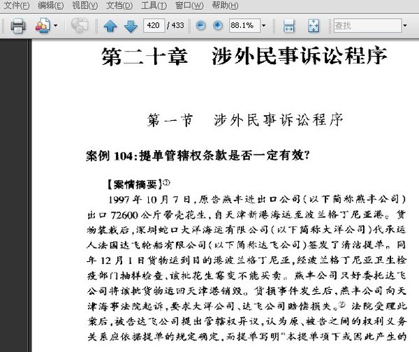 : 第一章 民事诉讼法的基本原则 案例1:如何理解处分原则的内涵? 第二章 民事诉讼法的基本制度 案例2:本案的审理程序是否合法 第三章 主管与管辖 第一节主管 案例3:法院能否审理这起“侵权案? 案例4:劳动争议超过仲裁时效,可否再向法院起诉? 第二节级别管辖 案例5:中级人民法院管辖的第一审民事案件有哪些? 第三节地域管辖 案例6:这起借贷合同纠纷应由哪个法院管辖? 案例7:对于涉及数个不动产的纠纷,如何确定案件的管辖地? 案例8:协议管辖可否选择多个管辖法院? 第四节移送管辖和指定管辖 案例9:本案是否应当移送管辖? 案例10:有管辖权的法院移送案件,上级法院可否指定其管辖? 第五节 管辖权异议和管辖恒定 案例1l:过了答辩期,当事人是否一概不能提起管辖权异议? 案例12:公司住址变更后,受诉法院能否继续审理? 第四章 当事人 第一节 当事人概述 案例13:法人的工作人员因职务行为或授权行为而发生诉讼,如何确定当事人? 案例14:无民事行为能力人和限制行为能力人能否成为诉讼当事人? 案例15:起诉的原告不符合条件,法院应当如何处理? 案例16:死者的名誉受到侵害,谁有权提起诉讼? 案例17:企业被兼并后,因兼并前的民事活动发生纠纷应由谁作当事人? 第二节共同诉讼人 案例18:必须共同进行诉讼的当事人没有参加诉讼,法院应当如何处理? 案例19:原告只起诉其中一个责任人,法院能否驳回起诉? 案例20:本案属于哪一种共同诉讼? 第三节诉讼代表人 案例21:代表人变更或放弃诉讼请求,是否应经被代表的当事人同意? 案例22:无诉讼行为能力的当事入如何选任诉讼代表人? 案例23:人数不确定的代表人诉讼如何公告和确定诉讼代表人? 第四节第三人 案例24:有独立请求权第三人与无独立请求权第三人、必要共同诉讼中的共同原告有何 差异? 案例25:与案件无利害关系的人能否列为第三人? 案例26:管理办和价格所是否应为本案的无独立请求权第三人? 第五章 诉讼代理人 第六章 诉的理论与制度 第七章 民事证据制度 第八章 财产保全和先予执行 第九章 对妨碍民事诉讼的强制措施 第十章 诉讼费用 第十一章 普通程序 第十二章 简易程序 第十三章 民事判决、裁定与决定 第十四章 第二审程序 第十五章 审判监督程序 第十六章 特别程序 第十七章 督促程序 第十八章 公示催告程序 第十九章 执行程序 第二十章 涉外民事诉讼程序