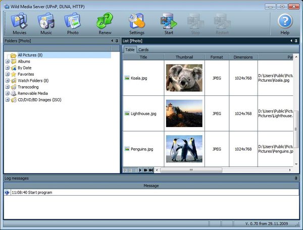 Wild Media Server (UPnP, DLNA, HTTP) - program, which provides media resources (photographs, audio and video files) on your computer to other UPnP (DLNA) devices in the home network, for example, Philips TVs, Sony TVs, Samsung TVs, Sony Playstation 3, XBOX 360, WD TV Live, mobile and PDA devices.
