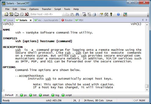 SecureCRT for Windows, Mac, and Linux provides rock-solid terminal emulation for computing professionals, raising productivity with advanced session management and a host of ways to save time and streamline repetitive tasks. SecureCRT provides secure remote access, file transfer, and data tunneling for everyone in your organization.