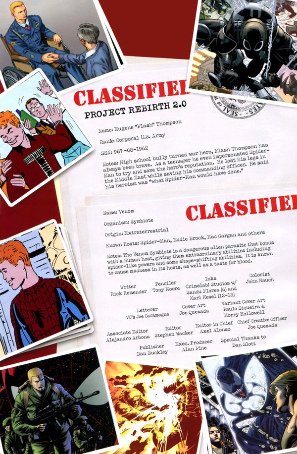 先来回顾一下历任毒液的历史:当年Eddie Brock从蜘蛛侠那里拣到了附有外星寄生体的蜘蛛服,借此变成了大反派毒液。而后Eddie身患癌症,寄生体通过不断吞噬他体内的癌细胞,以让他主存活下去。但康复后的Eddie恢复了自己的宗教信仰,决定彻底摆脱掉寄生体。于是他将寄生服以一亿美元的价格卖给了黑帮老大Fortunato。Fortunato的儿子Angelo成为了毒液的第二任宿主,但他的愚蠢行为最终害得自己死于非命。很快,寄生体就粘附上了一个新的宿主---Mac Gargan,也就是前任蝎王(Scorpion)。大事件“围城”(Siege)后,Mac Gargan被俘。他被强行与寄生体分离。如今它即将有一位新主人.....
