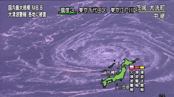 3月11日 下午14:46(北京时间13:46)日本发生了8级大地震。