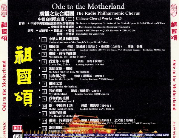 龙音唱片 -综合类-祖国颂 中国合唱歌曲选三 Ode to thr Motherland [龙音香港版 RA-981012C]广播之友合唱团[FLAC]