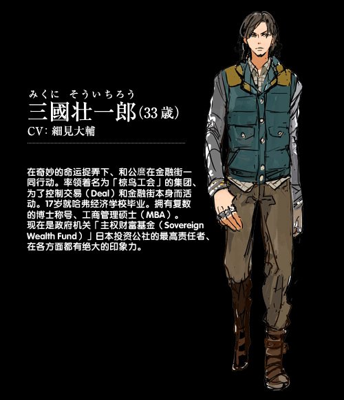 金钱,所有人都知道是什么,但金钱对于你们来说,到底有多清楚金钱的力量?「C」的故事舞台设定在20XX年,日本正处于严重的巨额财政赤字,日本的经济可谓已经崩坏了,正处于末期的危机当中。但是,一个叫“Sovereign Wealth Fund”的政府系金融机构却出现了,凭着成功地运用政府的资金,使政府能够奇迹地实现财政的重建。但另一方面,虽然日本经济能够走出谷底,但在这回复期间,长期的就职问题,失业、自暴自弃者引发的无差别杀人事件,因结婚率的减少导致少子化而感到绝望的人,逃避现实的人,失踪者及自杀者都急剧增加中……简单来说,当时的气氛使人感到非常不安及担忧。而就在某一天,就读都内的经济学部的大学生主人公・余贺公麿,在他面前出现了一位奇怪的男子真板木,并询问公麿“如果抵押你的未来,借给你金钱,你又将如何利用自身的才智去使用这笔钱?”。就这样,公麿的世界便从这天起大大地转变了。