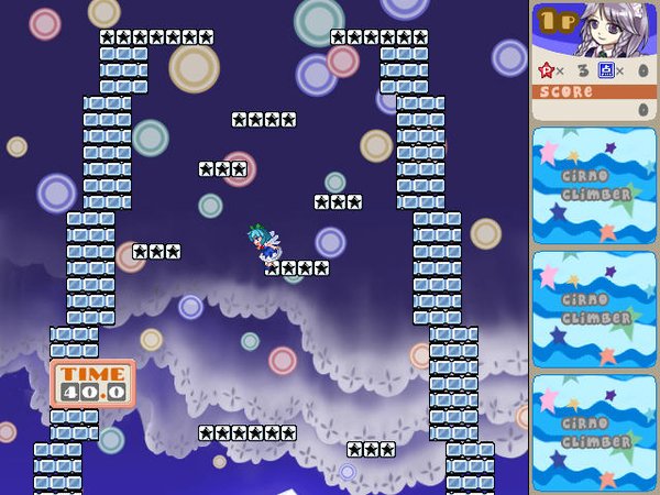 东方系列游戏,与某有名红白机敲冰块作品十分相似, 当然,也能两人同乐,操作上还是一样的不容易。 建议使用手柄,可在Config中调整输入设置。 小时候FC上的那2个企鹅的敲冰块我们玩的不亦乐乎。 就在我们的口味已经变得不再萌那两只企鹅的时候!! 东方来了!东方系列同人游戏这次为我们带来了东方敲冰块。 跟FC上的那个敲冰块游戏方式规则一摸一样,只是人物变成了萌杀我们的东方系列的妹妹们。 一起进入东方的萌世界吧。