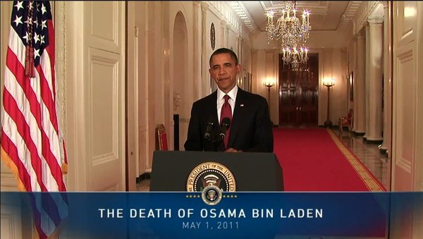 今晚,我可以向美国民众和全世界宣布,美国已经完成了消灭基地组织头目本-拉丹的行动,此人是屠杀数以千计无辜男女老少的恐怖分子。