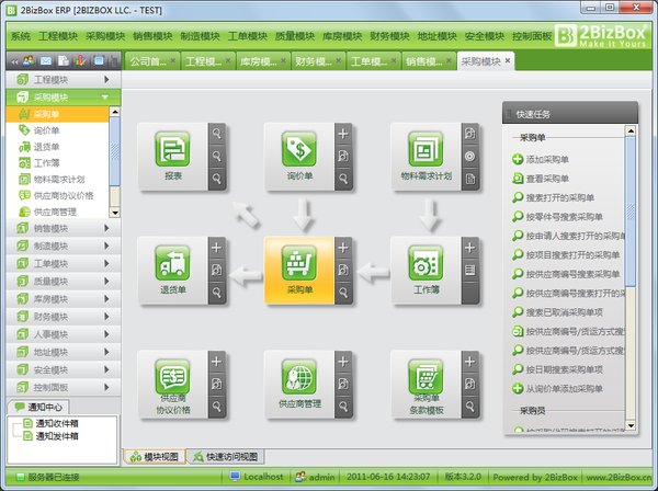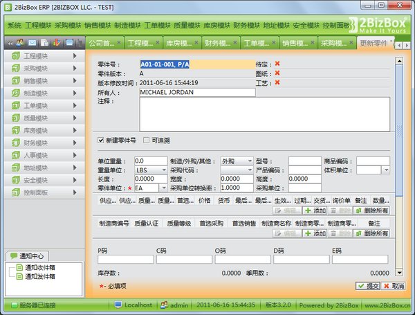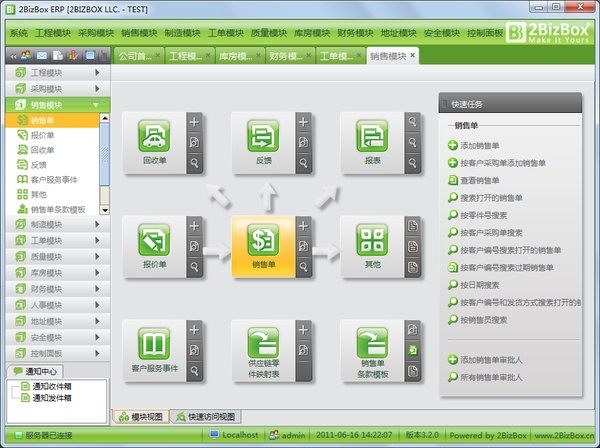 2BizBox是世界顶级免费ERP软件,模块多、功能强,长于制造业,是业界最专业强大、美观易用的免费ERP,价格昂贵的商业产品也相形见绌。从跨国企业到个体经营户,从美国到中国,越来越多的人开始研究使用2BizBox,节约信息化成本。2BizBox诞生于20年前的美国,如今已发展到第三代,是中小企业首选ERP软件。随着2BizBox的永久免费,传统ERP行业将被彻底颠覆,“免费时代”已经到来!