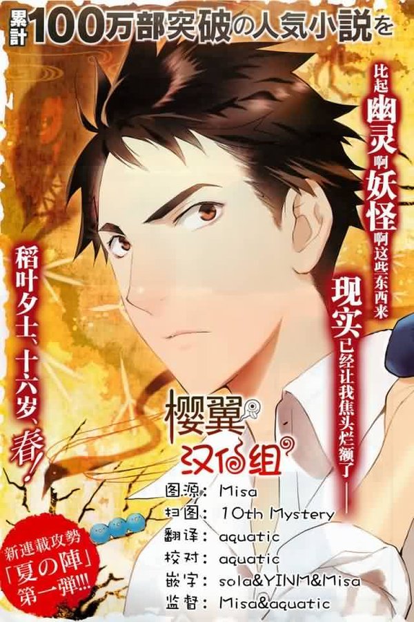 ■漫画名:妖怪公寓里优雅的日常生活 ■著者:香月日轮&深山和香 ■出版社名:月刊少年Sirius ■发行日期:2011年 ■发行状态:连载中 ■文字:简体中文 ■版本:樱翼汉化组