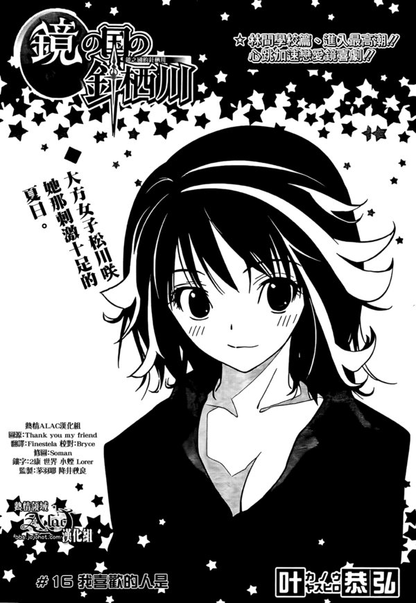 ■书籍名:镜の国の针栖川 ■作 者: 叶恭弘 ■出版社:集英社 ■类 型:恋爱 ■连载杂誌:周刊少年JUMP ■连载期间:2011年 – 连载中