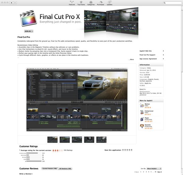 Here's a ready-to-use Mac App Store copy of Final Cut Pro X v10.0 complete with Compressor 4.0 and Motion 5.0. Final Cut Pro X... Completely redesigned from the ground up, Final Cut Pro adds extraordinary speed, quality, and flexibility to every part of the post-production workflow.