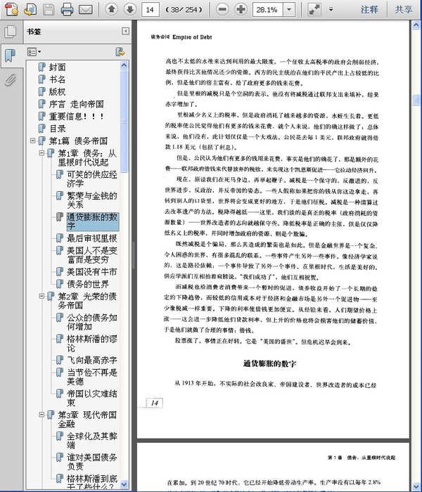 《债务帝国》讲述了对于美国的这种信仰——包括美国文化、政治、社会以及经济方面的优越性——必将以某种形式破火。这像是下一个阶段……帝旧的衰落阶段……它可能会持续一百年或更长。美国的所有资产总值人约只有50万亿美元。目前的美国欠债是37万亿美元。再把美国政府的欠债加上去,美国就一文不不值了。破产的破产,倒闭的倒闭。没有面包就意味着一无所有。即使想还债也还不起了。美国用黄金偿还海外债务已有34年。此后,它发现提供美元形式的国债更为容易。值得注意的是,外国人已经接受了美元,好像它们像黄金一样好。更让人觉得不可思议的是,更多时候,国债不仅仅像黄金一样好——它甚至更好。在罗纳德·里根第一次当总统后的二十年里,黄金价格一直在下跌。海外的中央银行家拿着美国国债心存感激,甚至为拥有它们深感幸运。