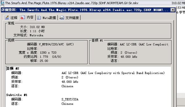 代码 ============== -=== NVF 信息 ===- 压片人(Creator):鬼谷子 文件名称:蓝精灵与魔笛.The.Smurfs.And.The.Magic.Flute.1976.Bluray.x264.2audio.aac.720p.SDHF.NORMTEAM.GV-Sir.mkv 文件大小:310.0 MiB 影片长度:01:11:01.931 混合码率:610 Kbps 视频码率: 视频帧率:25.000 fps 视频尺寸:1280 x 720 视频标题:SDHF Made By NORMTEAM.GV-Sir 音轨信息:英语/国语 字幕信息:N/A 封装时间:2011-08-17 检验MD5:B54F43ADF21E14A29EF167BE178A3979