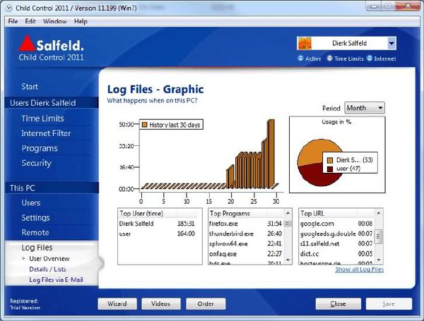 Computers are the place for children. This is the place where they can sharpen their agility as well as their abilities. They can learn and make new friends. What’s more, the Internet provides information for homework assignments. So far, so good. But they also need to be protected from the computer—for one thing, so that they don’t lose their sense of time and forget to go out and play with their friends once in a while, and for another, because of the dangers lurking on the Web. That’s why responsible parents everywhere install Child Control on every computer that their children use.