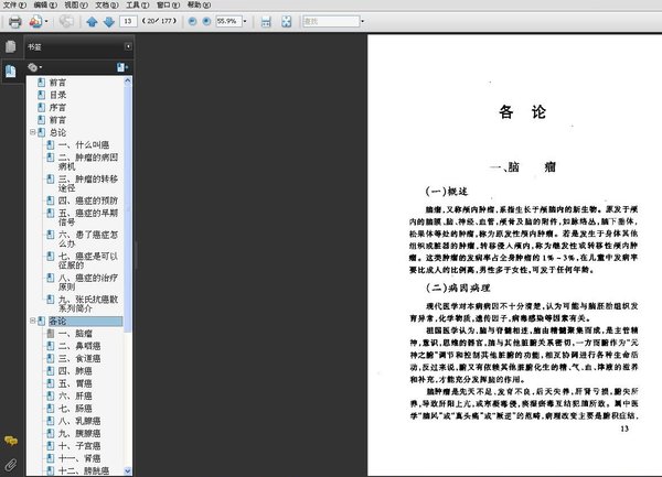 癌症,医学术语亦称恶性肿瘤,中医学中称岩,为由控制细胞生长增殖机制失常而引起的疾病,癌细胞除了生长失控外,还会局部侵入周遭正常组织甚至经由体内循环系统或淋巴系统转移到身体其他部分,本书分为三部分:总论、各论、附录,包括肿瘤的病因病机、肿瘤的转移途径、癌症的早期信号、脑癌、肝癌、肠癌等。