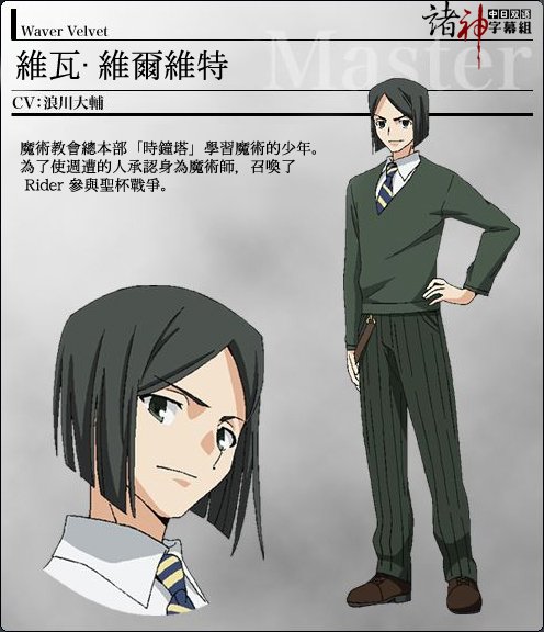 参加圣杯戦争的7名由圣杯选出的魔术师被称为御主(マスター,英文Master),与7名被称为从者(サーヴァント,英文Servant)的使魔订定契约。他们是由圣杯选择的七位英灵,被分为七个职阶,以使魔的身份被召唤出来。