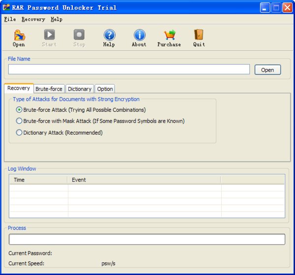 轻松和安全地找回RAR压缩文件密码,一个简单、易用、功能强劲的 WinRAR/RAR 压缩文件密码的恢复工具。它支持所有版本的 WinRAR/RAR 压缩文件,不管 WinRAR /RAR 的密码有多长和多复杂,它都可以恢复。它通过暴力破解、带掩码的暴力破解和字典破解三种模式来加强对 WinRAR 压缩文件密码的恢复,并且可以根据实际使用的需要对字典进行定制,工作迅速并且富有成效。此外,它是一个有史以来最容易使用的密码破解程序,甚至是一个新用户都可以在不到一分钟的时间内将其完全掌握。