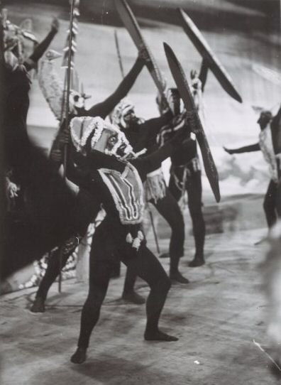 in the 1940s. It was first performed as a concert suite in 1946. In July 1950 it was performed as a ballet, at the Empire Theatre in Sydney, choreographed by Rex Reid, with dancers of the Melbourne-based National Theatre Ballet. Wildly successful and seen as a national "coming-of-age",[1] the ballet was performed again with new choreography by American-born dancer, choreographer and writer Beth Dean in 1954. Notably, Dean and her Australian husband, Victor Carell, had spent several months in remote outback Australia researching Aboriginal ceremonies, costumes and dance, upon which Dean's version was based.[2] In this first production, Dean danced the role of the Initiate herself.